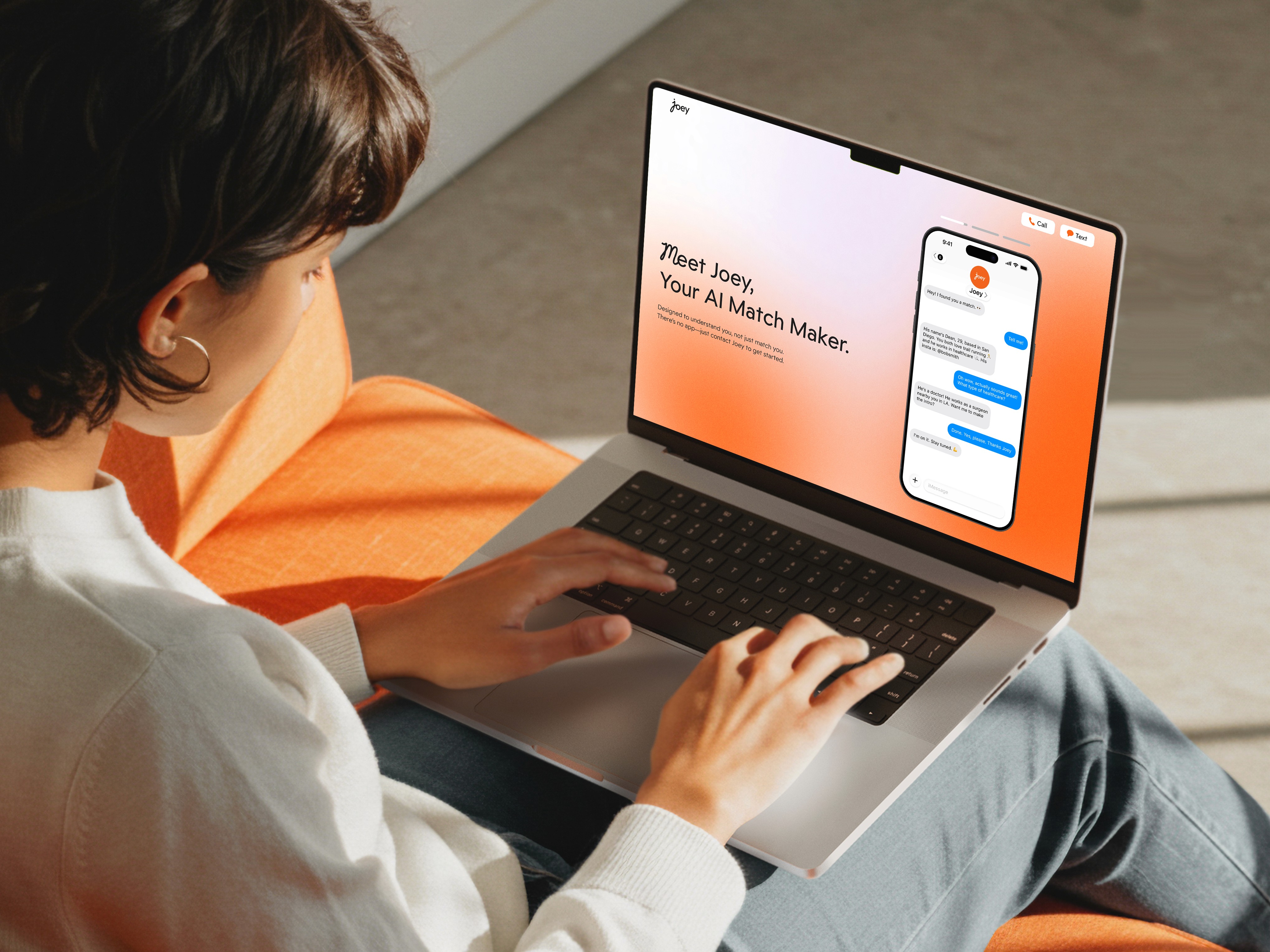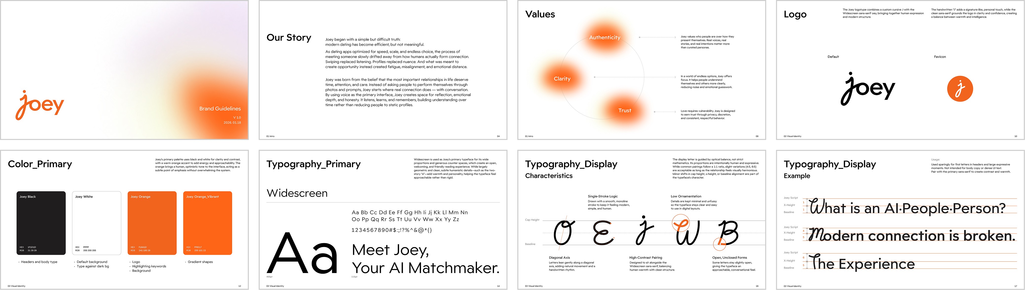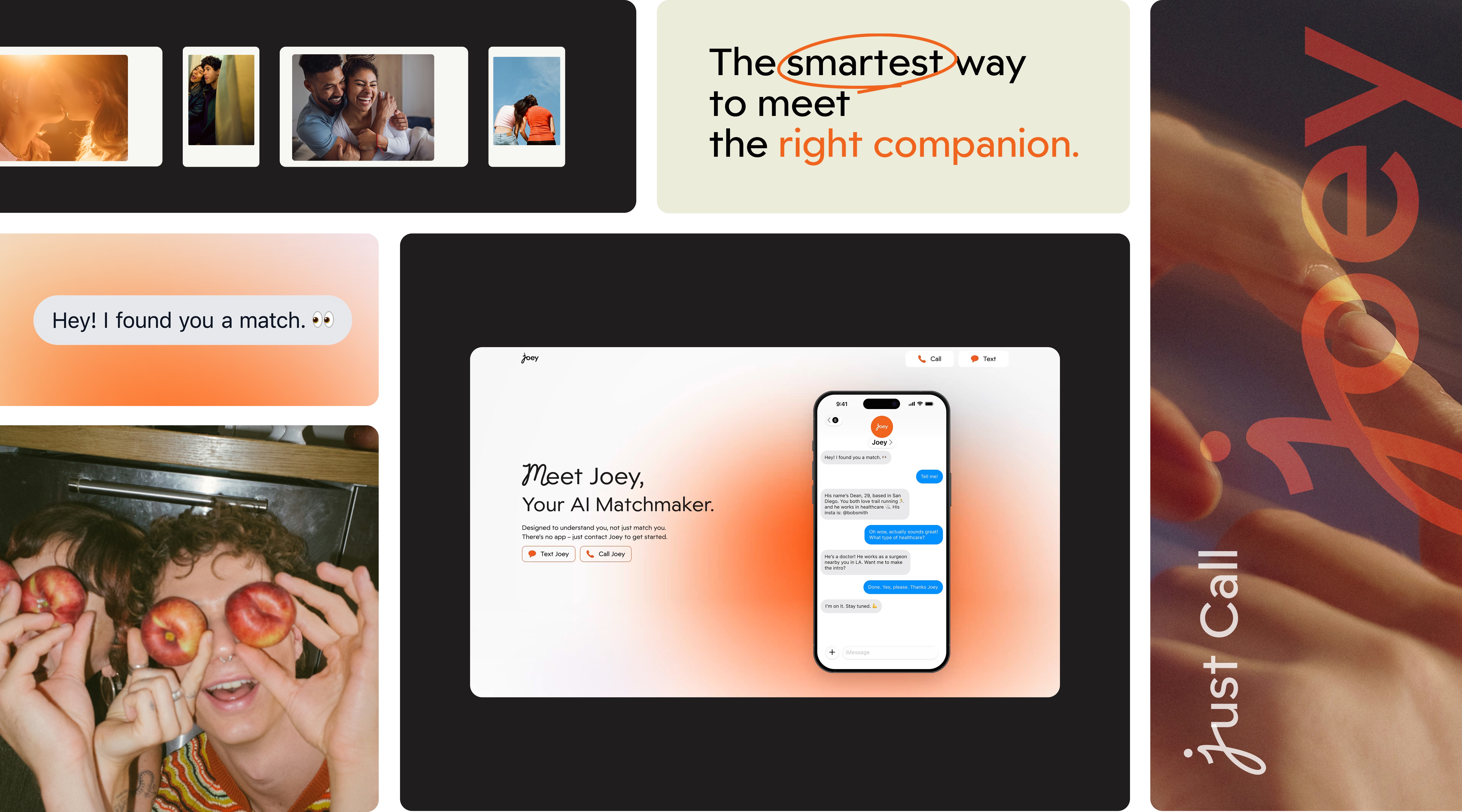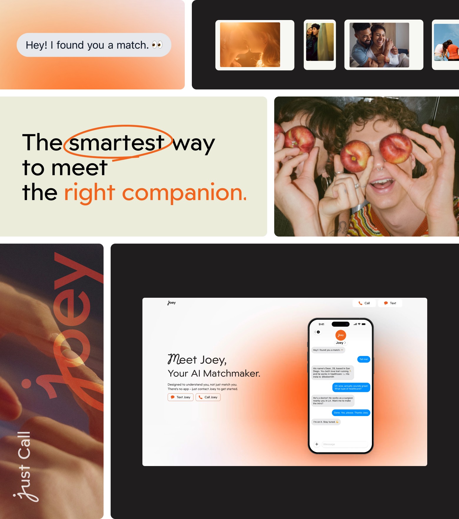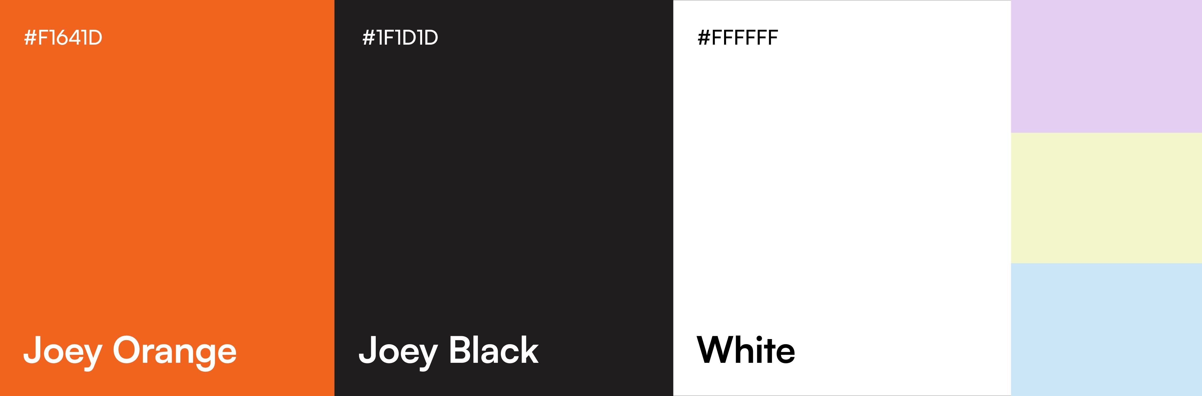 Orange anchors Joey’s identity with warmth and social energy, reinforcing the product’s human-centered approach to connection.