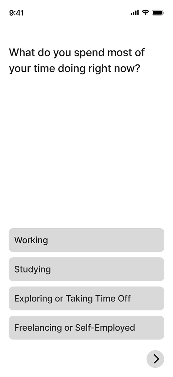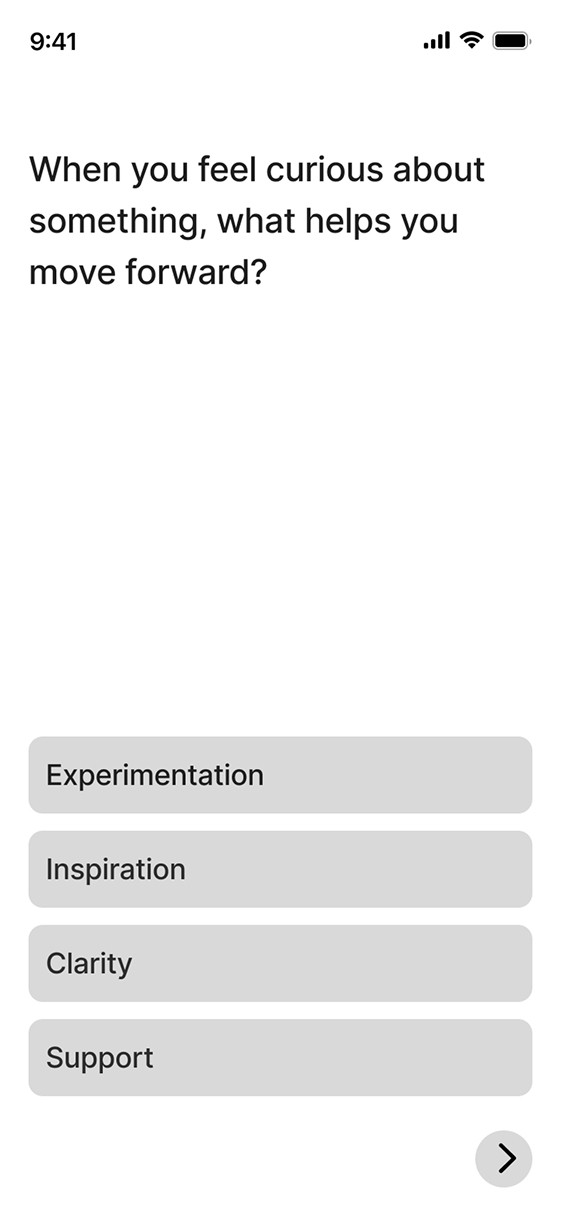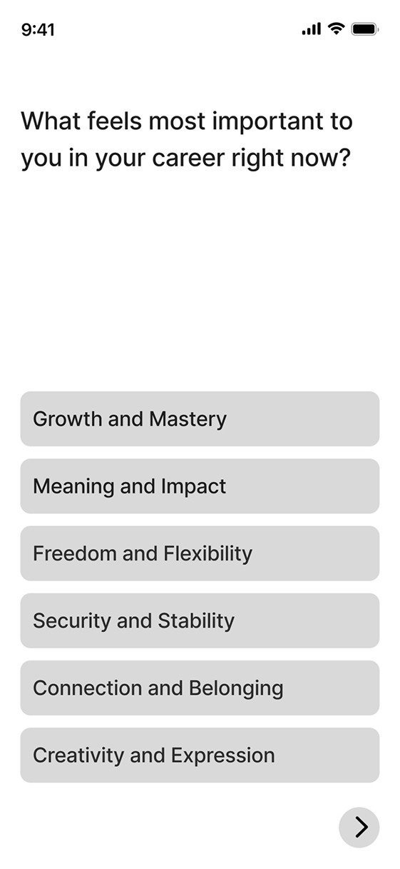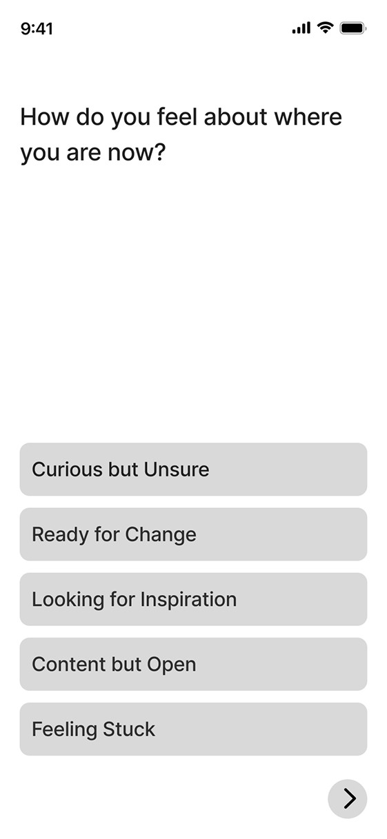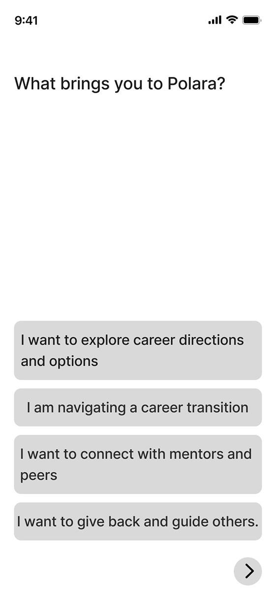 I designed the onboarding to ask essential questions that move from intent and context to mindset and values, helping Polara understand what the user wants and why it matters.