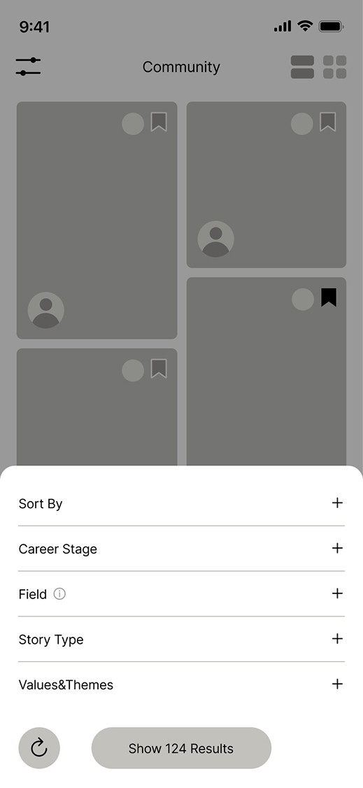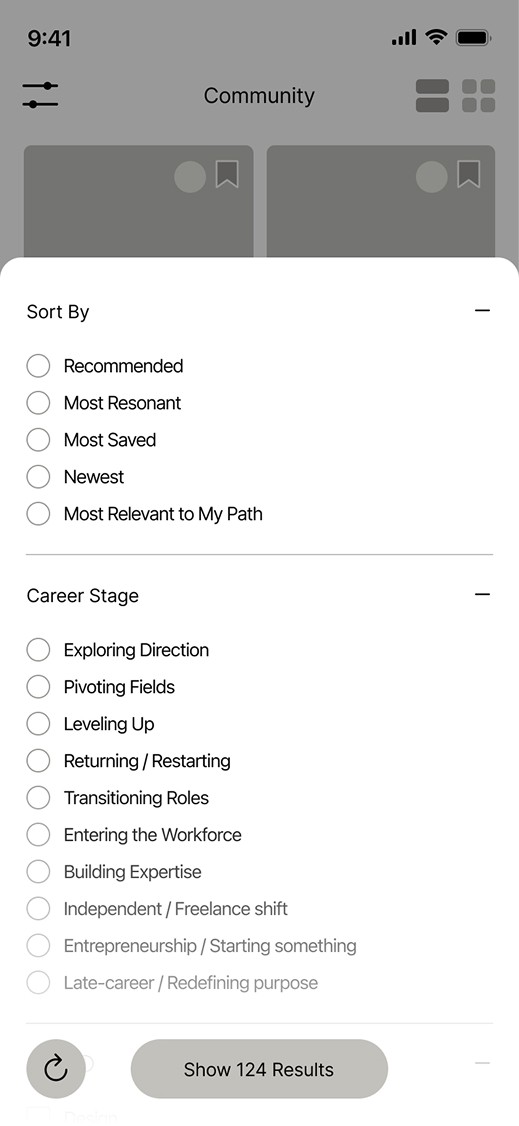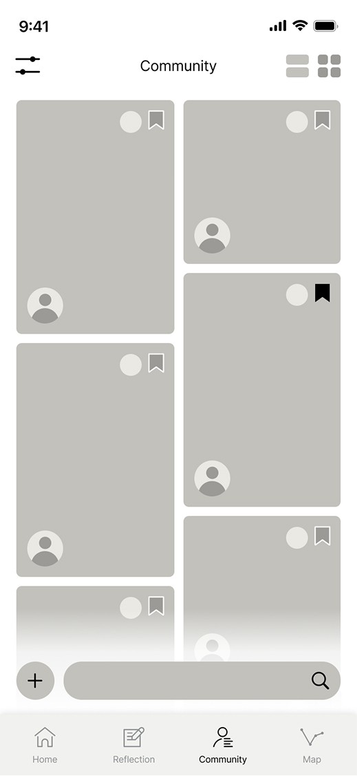 Community tab brings people together in a supportive environment where users can explore reflections and perspectives from others.