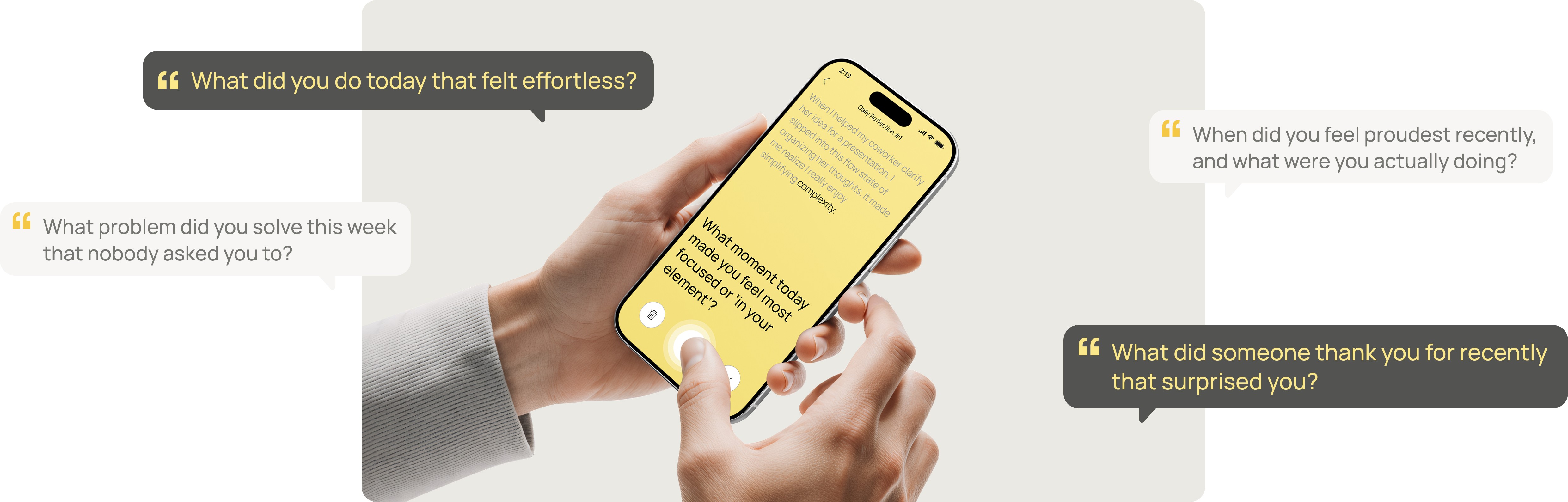 The insight from research wasn't that people lacked options. It was that they lacked self-knowledge. Reflection on small, specific moments is what gradually surfaces that clarity.