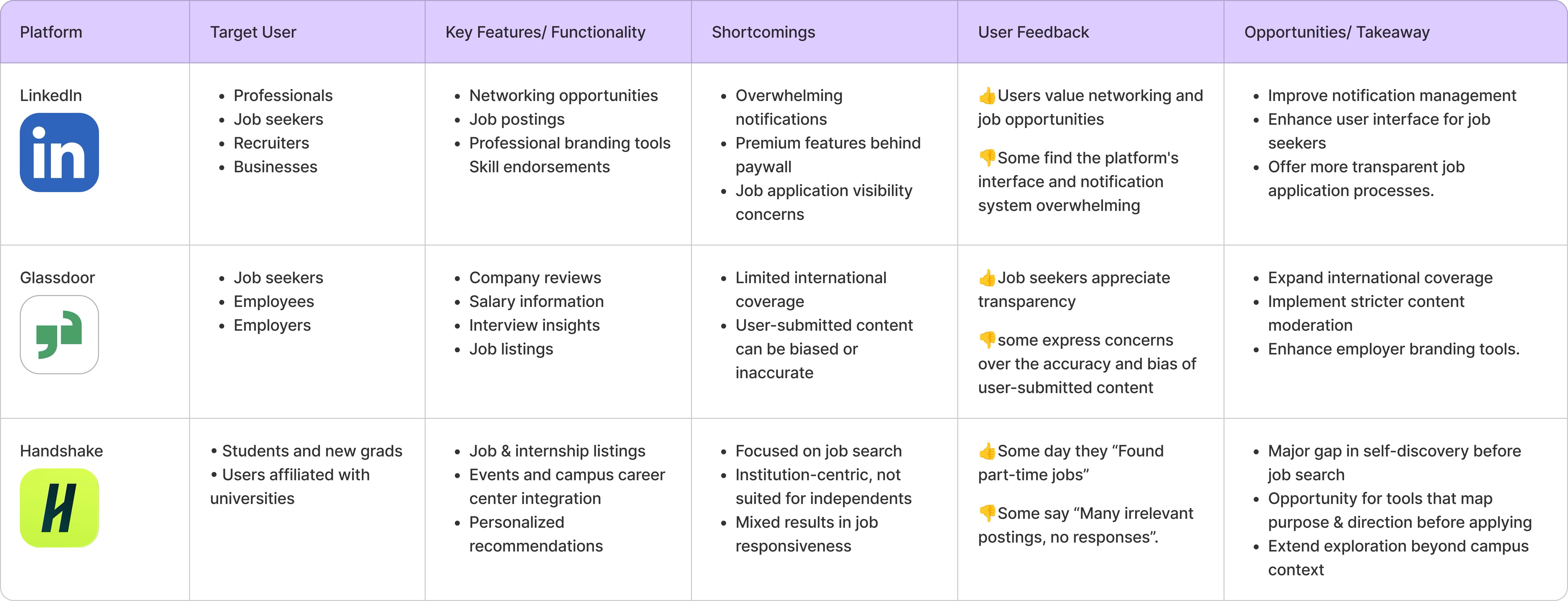 Across 10 platforms, the focus is almost always on job discovery or skill building. Career exploration and understanding who you are before deciding where to go is largely absent and where it exists, shallow.