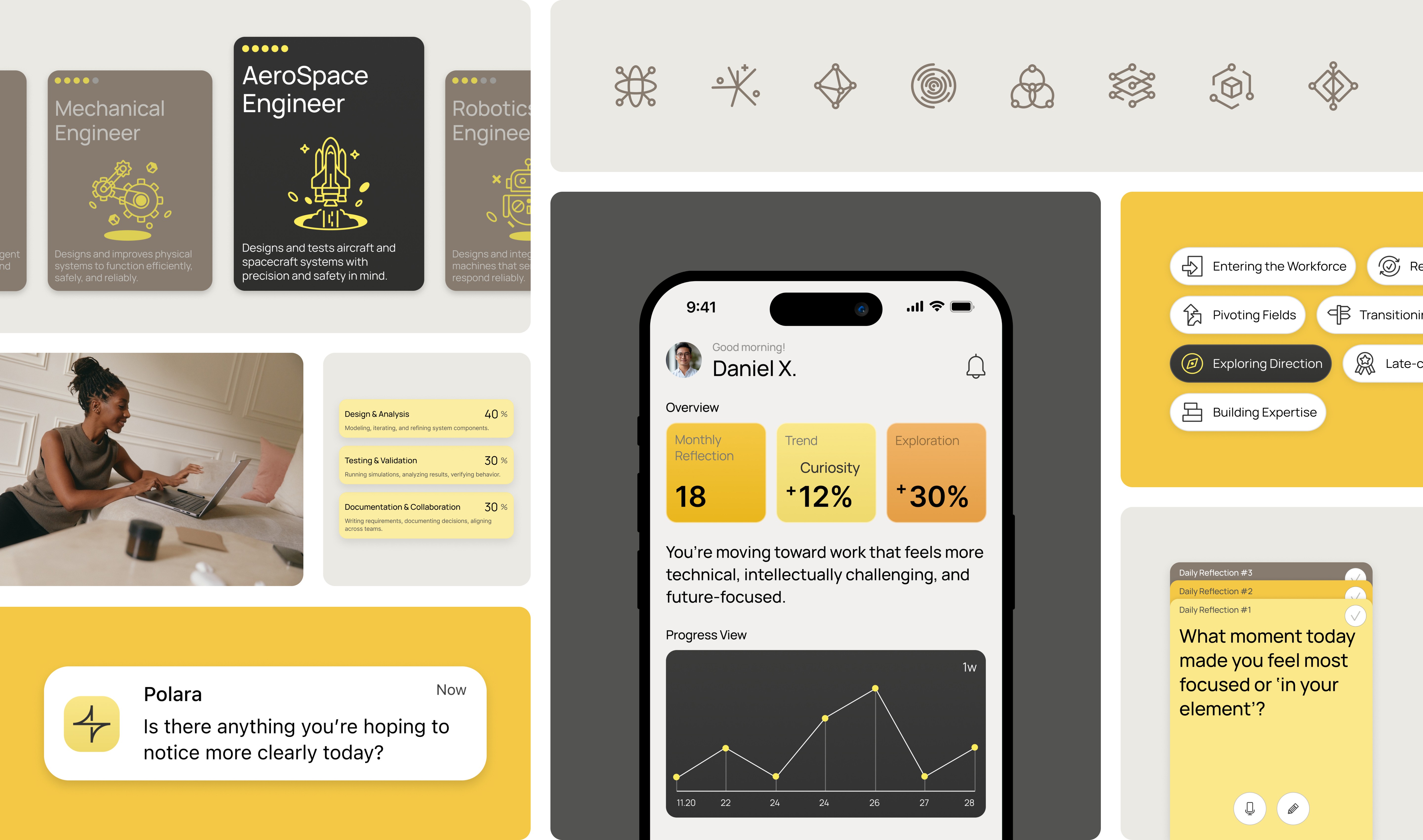The hardest part wasn't designing the features — it was figuring out what question Polara was actually trying to answer. Early on I kept designing for career discovery, when the real problem was self-discovery. That reframe changed almost every decision that followed.